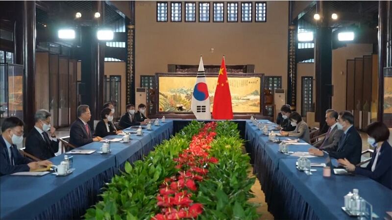 韩国外长朴振于8月8日到10日访问中国,这是韩国总统尹锡悦上台后,政府高层官员第一次访中,因此备受关注。 8月9日下午4点,中国外长王毅和到访的朴振在青岛举行了会谈。会谈主要围绕"芯片四方联盟"和"萨德三不政策"展开。