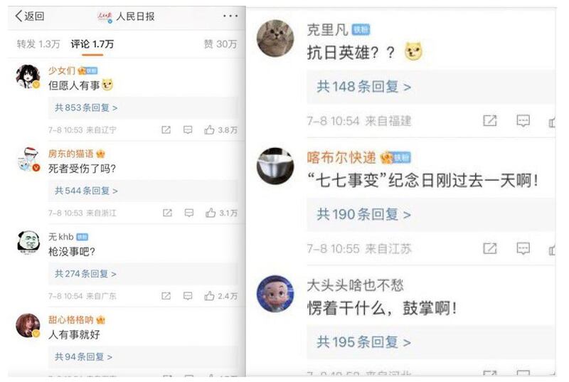 除了日本主流媒体,推特上也有大批小粉红留言,有人更把安倍晋三遇刺与七七卢沟桥事变相提并论说,“昨日七七事变,今日安倍祭天”。有网友则声称在安倍遇袭前夕曾成功接近他,说“不辜负组织的栽培”。
