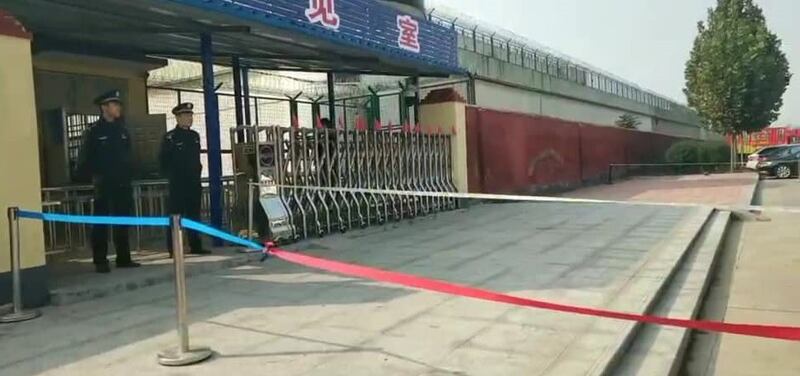 中国狱中人权律师王全璋10月18日,在山东临沂监狱获妻子李文足探监。当局派出大批便衣维稳,并以高音喇叭阻挠媒体采访。李文足表示,王全璋的健康状况令人担忧。
