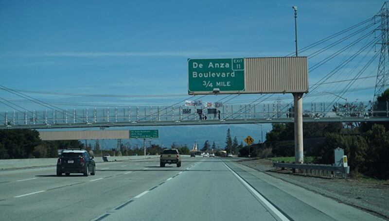Freeway是英语“高速公路”的意思。美国香港人会馆成员阿瑞塔(Arietta)向记者介绍了本次活动的情形:“我们在多个地方,在11月6日星期六中午的时间,看什么地方有横跨高速公路的人行天桥,我们就在上面摆横幅。”