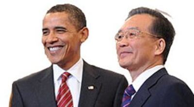 中国总理温家宝近日出访美国,星期四在纽约联合国总部与美国总统奥巴马会面,温家宝说,中美在经贸金融上,有更多的合作机会和空间。但温家宝早前出席美国政商团体欢迎晚宴时表示,人民币尚不具备大幅升值的条件,并说大幅升值可能引发社会动荡。