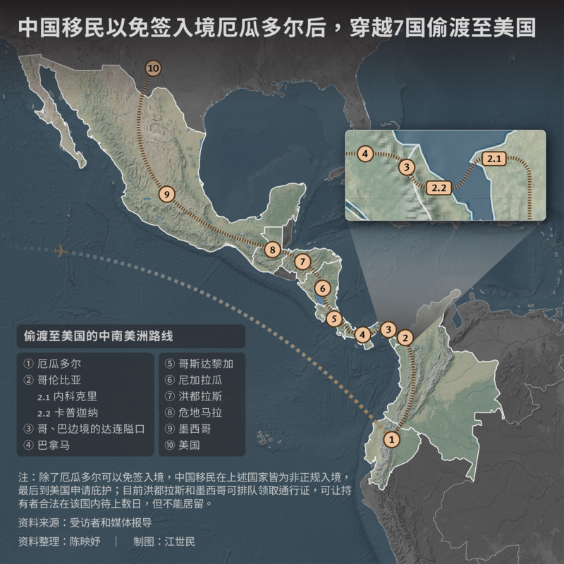 他们南美的第一站,大多是到中国公民不需签证即可入境的厄瓜多尔。但在中国政府对边境控管、护照申请严加管控的情势下,要离境是愈加困难。
