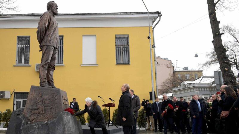 普京评价说:索尔仁尼琴"清楚地描述了真实的、真正的、人民的俄罗斯和给数百万人带来痛苦和严峻考验的极权主义制度。"