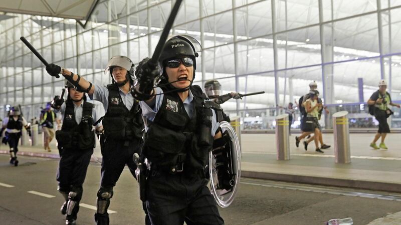 而最新动向是,随着香港反修例示威行动再度升级,在持续几天的“万人机场接机”行动后,香港多区再有示威行动,警民冲突级别升高。港府仍然回避港人的5项诉求,而北京则发出了“恐怖主义苗头”的威吓声。习近平政权的港澳办发言人杨光12日下午在记者会上宣称,香港反送中示威“已经构成严重暴力犯罪,并开始出现恐怖主义的苗头”、“必须坚决依法打击,毫不手软,毫不留情”。随后,官宣《人民日报》当晚就在脸书上传武警集结深圳的影片,恐吓意味浓厚。