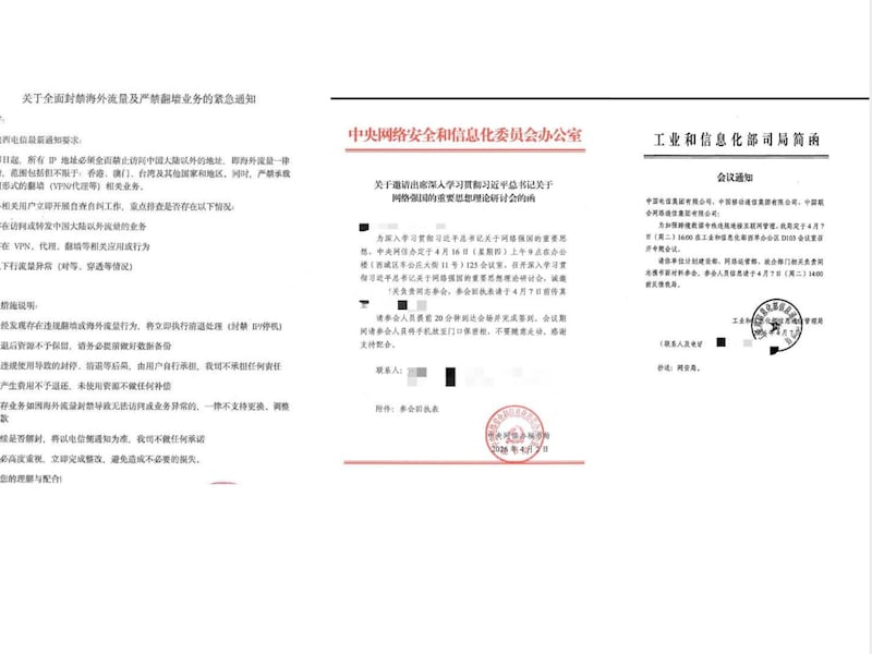 海外社交媒体近期流传4至5份涉及中国加强网络管理的内部文件。文件显示,中共中央网信办及三大电信运营商正加强对跨境网络连接的管控,涉及企业和个人。