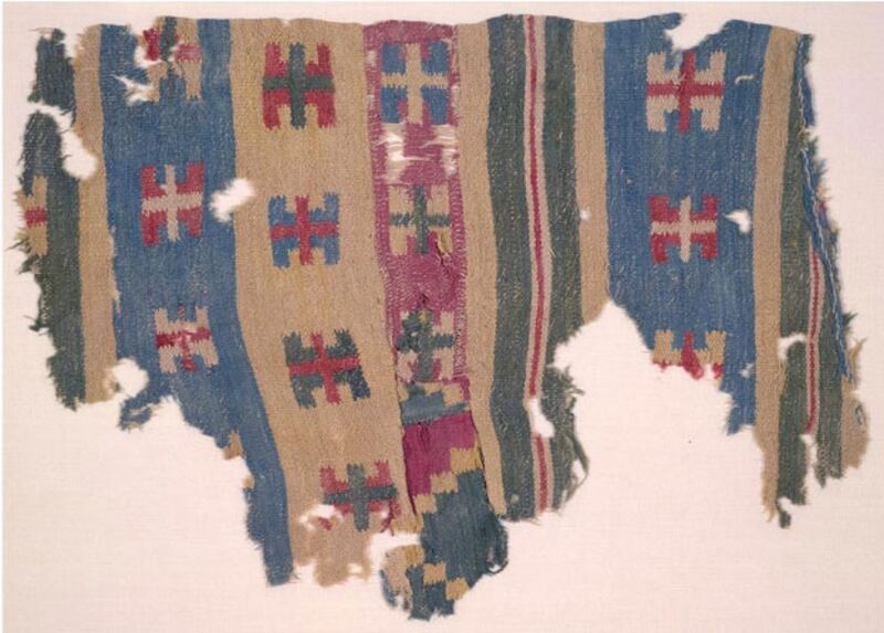 بۈيۈك بىرىتانىيە مۇزېيىدا 11 پارچە تارىم يۇڭ پالاس ئەۋرىشكىلىرى ساقلىنىۋاتقان بولۇپ، ئۇلارنىڭ ئىچىدىكى بىر دانىسىنىڭ رەڭلىرى مۇكەممەل ساقلانغان، تەكرارلانغان گېئومېتىرىيەلىك شەكىللەر ۋە «كرېست» شەكىللىك سىزىقلاردىن تەشكىل تاپقان نۇسخىلار ئۇچرايدۇ. بۇ خىل پالازلارنىڭ ئەينى ۋاقىتتا كېپەن رولىنى ئۆتىگەنلىكى ئېھتىماللىققا يېقىن.
