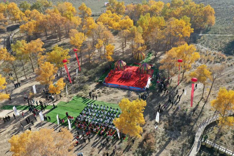ئالتۇن رەڭگە كىرگەن توغراقلىق. 2023-يىلى 14-ئۆكتەبىر، يوپۇرغا (ts.cn)