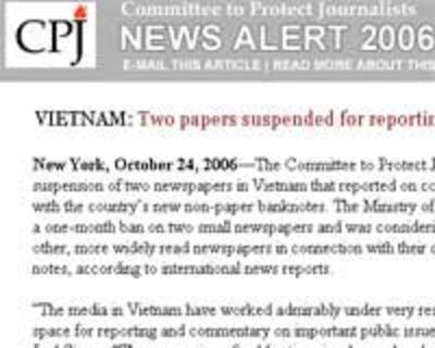 CPJ tức ủy ban bảo vệ ký giả trụ sở ở New York vừa ra thông cáo để phản đối quyết định của bộ Văn hóa và Thông tin Việt Nam cho lệnh đình bản hai tờ báo, đồng thời ra khuyến cáo đối với các báo khác, vì đã đưa tin cho hay là giấy bạc mới lưu hành, có nhiều khuyết điểm kỹ thuật.