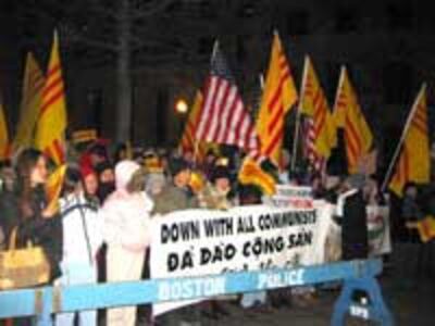 Riêng về đêm biểu tình tại Boston thì ông Lê Hoàng Hà kể lại: "Cuộc biểu tình tại Boston xảy ra trước một hội trường rất là lớn, chứa khoảng 3000 ghế. Nhưng số người tham dự vào đêm văn nghệ đó là khoảng chừng 70 người trở lại, chứ không hơn. Còn số người đứng ngoài tham dự biểu tình thì hơn 400 người, cho dù trời ở ngoài rất là gió lạnh, dưới 3, 4 độ C.