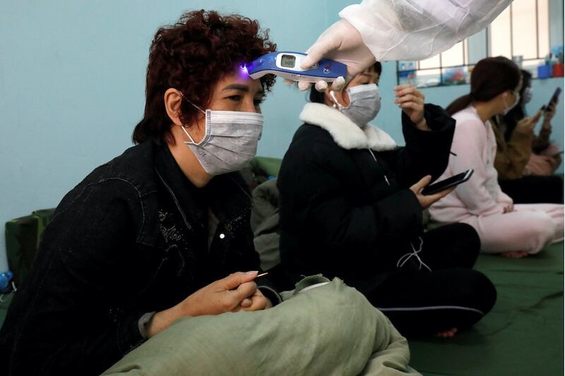 Hình minh hoạ. Bác sĩ quân đội kiểm tra thân nhiệt cho người về từ Trung Quốc đang được cách ly ở một trung tâm ở Lạng Sơn hôm 20/2/2020 (Reuters)