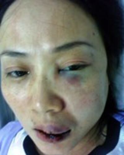 Chúng tôi nói không, có dấu hiệu gì cho thấy chúng tôi biểu tình hay không, khi nào chúng tôi biểu tình hãy lên tiếng. Người nào nói như vậy thì họ nắm cổ lôi đi. Tôi bị một tên an ninh cao to nắm cổ lôi đi một bên, và bên kia là một cô nào đó. Lúc có có thêm hai ba người an ninh nữa đến sờ soạng vào người tôi như muốn kiếm cái gì và xé cả áo tôi. Tôi la lên làm gì mà các ông sờ soạng khắp người tôi, tôi là phụ nữ các ông xâm phạm thân thể tôi. Tôi la lớn ‘bớ người ta’; khi đó có mấy cái đánh vào cổ tôi; nhưng hôm qua tôi không phát hiện nhưng sáng nay thấy đau mới biết họ đánh vào cổ và bụng tôi. Vì khi bị đánh vào mặt, lúc đó đau nhất nên tôi không cảm nhận đau ở những chỗ khác. Khi lôi lên xe, một tên an ninh cao to đấm vào mặt tôi hai cái, lúc đó tôi choáng váng không còn thấy gì nữa…